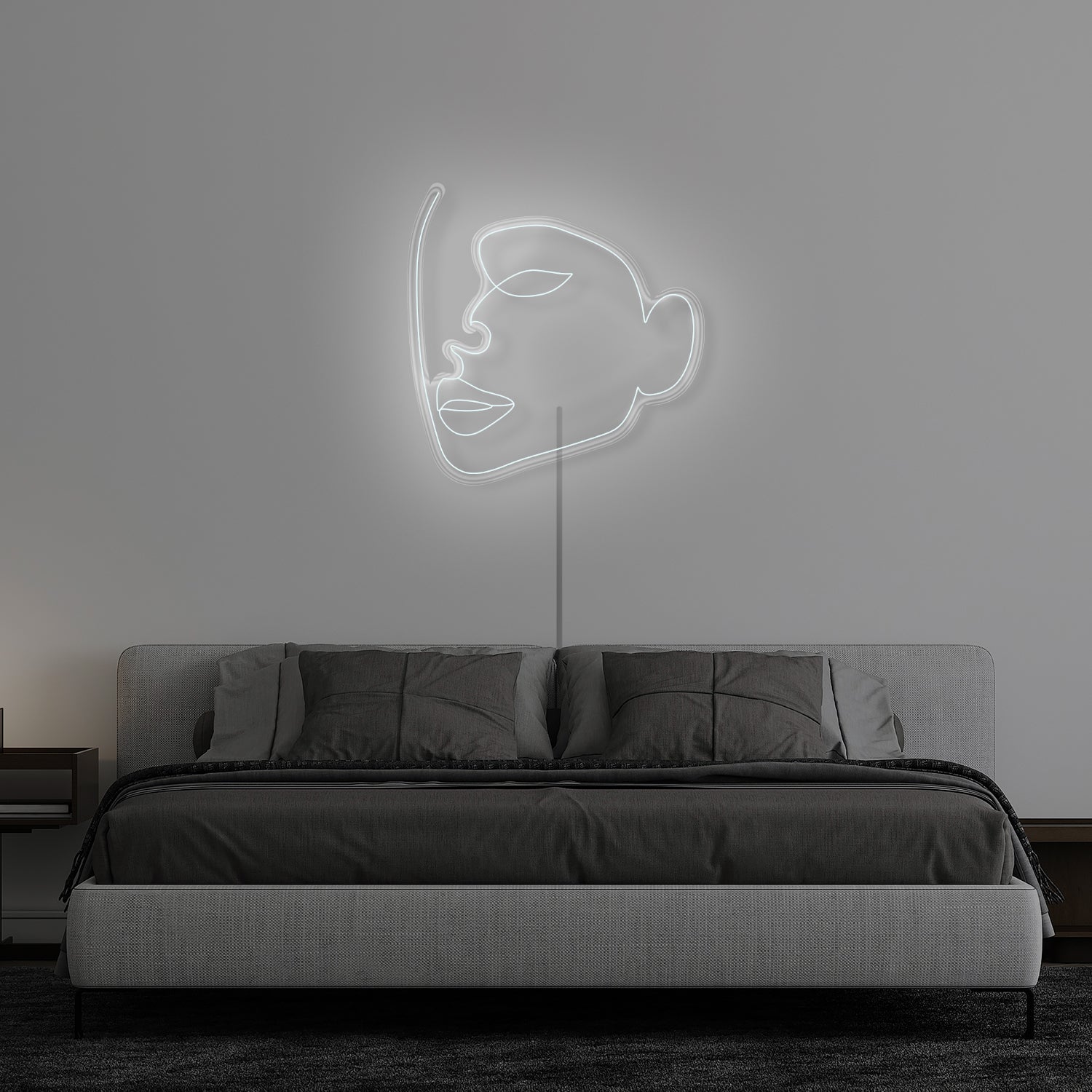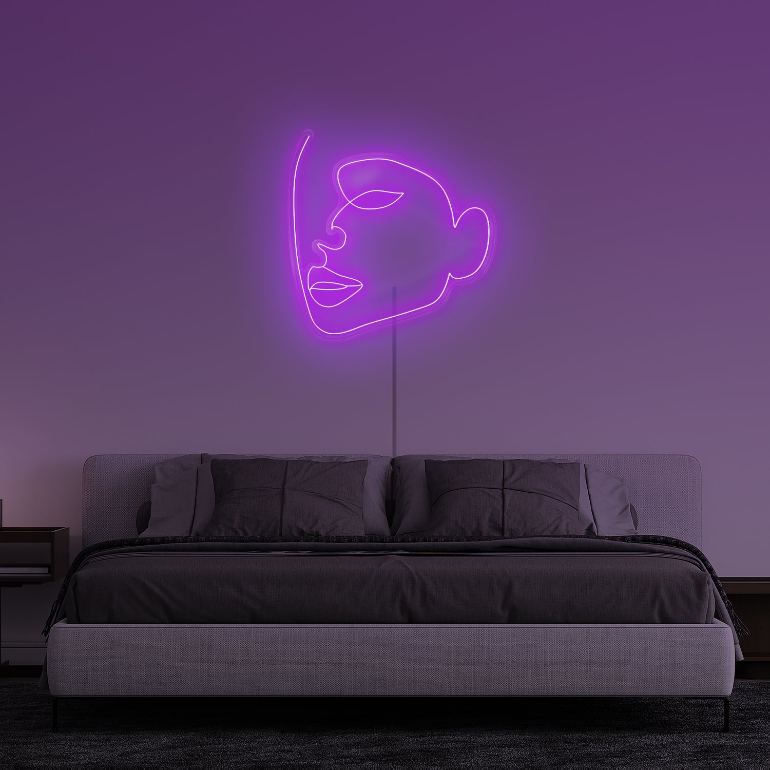 Introducing the Half Face 'Side View' Neon Sign - a unique and artistic addition to any space. Featuring a sleek and contemporary line drawing of a girl's face in profile, this neon sign is sure to make a statement. The simple yet elegant design will complement any décor style, whether it's in a bedroom, living room, or office.